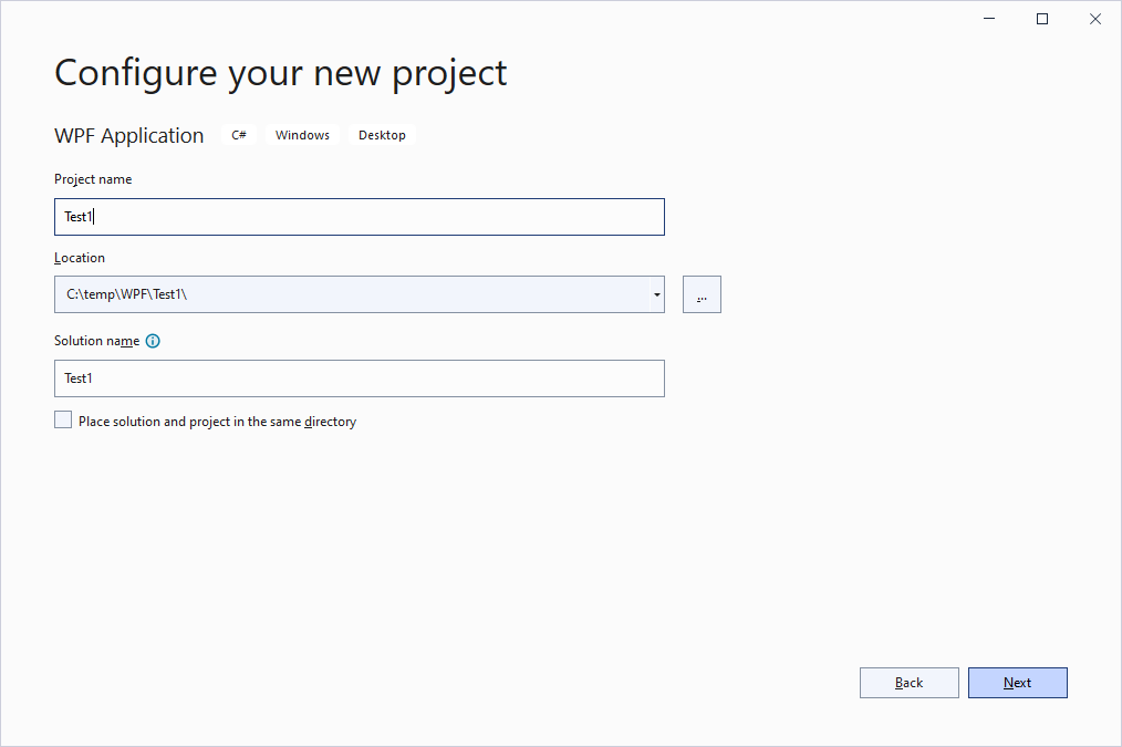 To begin, I performed the following steps to create a new blank C# WPF project:
