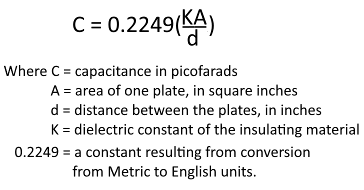 The formula used to compute the value of capacitance is: