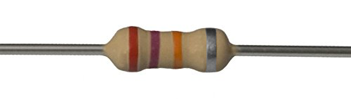 For example, lets say that we have a resistor (see example resistor below) that has the following color bands in this order: Red, Violet, Orange, and then Silver. Since red is the color of the first band, the first significant digit is 2. The second band is violet, therefore the second significant digit is 7. The third band is orange, which indicates that the number formed as a result of reading the first two bands is multiplied by 1000. In this case 27 x 1000 = 27,000 ohms. The last band on the resistor indicates the tolerance, which is the manufacturer's allowable deviation from the numerical value given on the reistor. In this instance its color is silver, which indicates that this resistor has a tolerance of 10 percent plus or minus of the value of the resistor. For this particular example resistor, the allowed limit of variation in ohmic value is between 24,300 to 29,700 ohms.